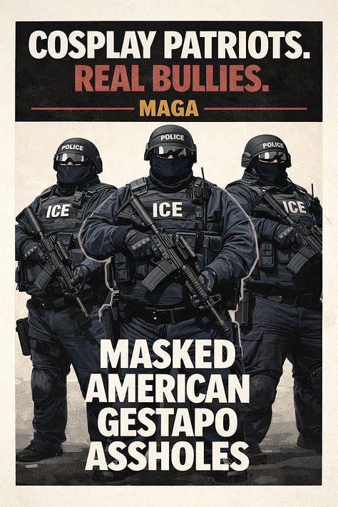 ICE is a federalized paramilitary used to terrorize American citizens. Proud Boys and J6ers are ICE agents. Say a prayer for Minneapolis. They’re taking on a huge obligation for our democracy.